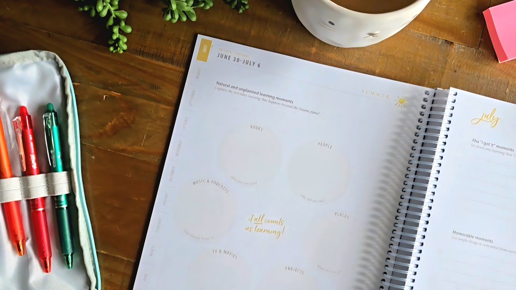 Thank you to Homeschool Essentials for letting me try this beautiful planner. I’m excited to continue using it for the rest of the year and to see all the memories we’ll fill it with. 💛