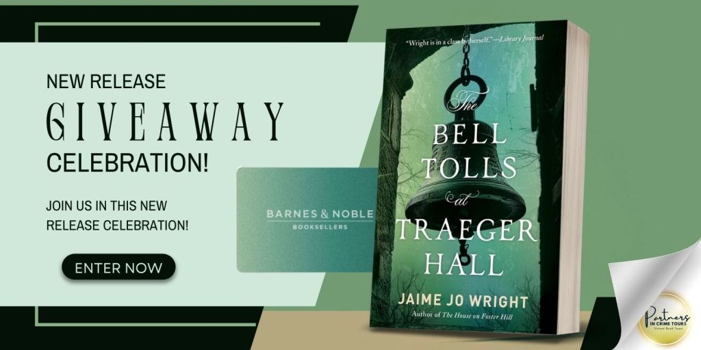 The giveaway is for: a paperback copy of The Bell Tolls at Traeger Hall by Jaime Jo Wright and a $50 Barnes and Noble gift card to a winner in the US