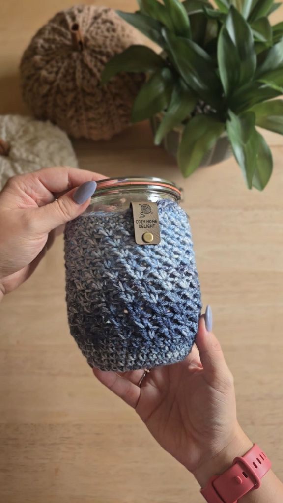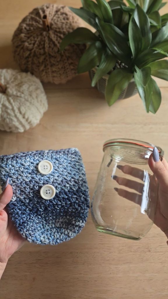 So I grabbed my hook, some extra yarn, and a little curiosity… and the jar sweater was born!