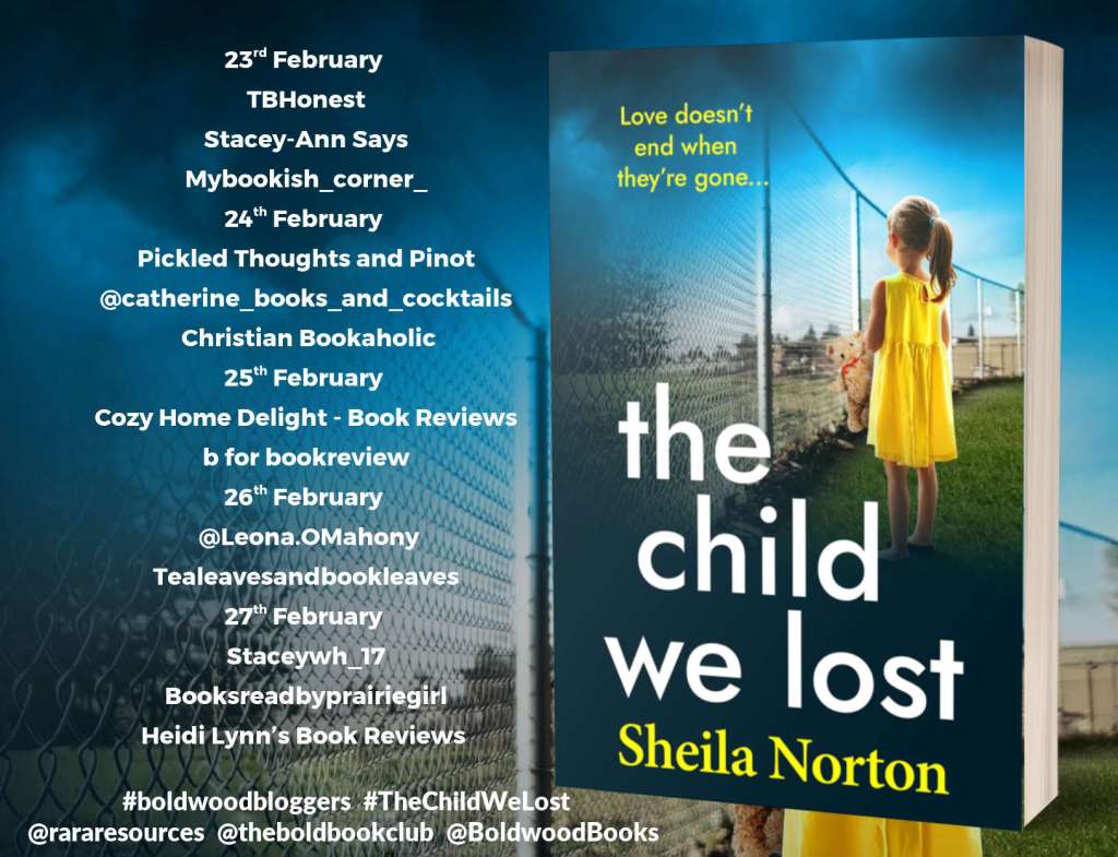I read The Child We Lost as part of a Rachel’s Random Resources tour via NetGalley. I’ve read a few of Sheila Norton’s books before, and they are always deeply emotional and centered around family drama, so I knew going in that this one would not be light.